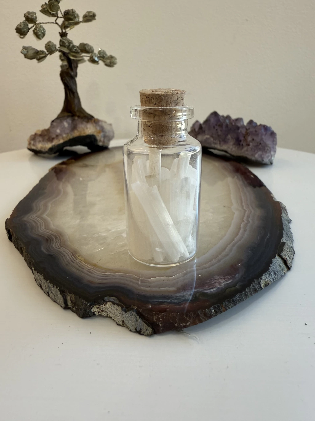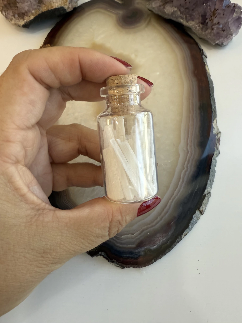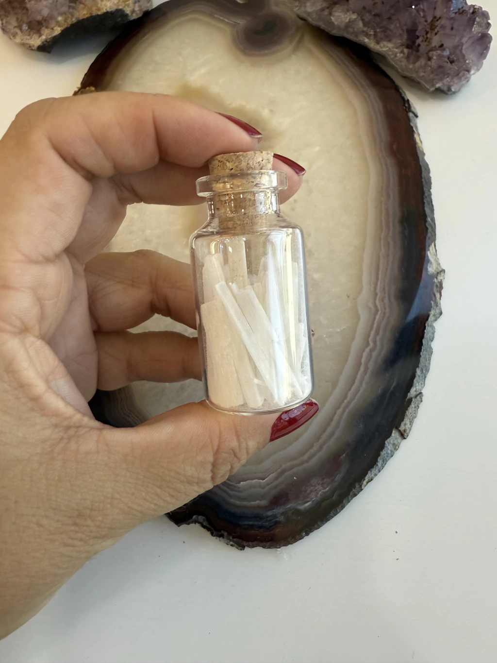 A Selenita é um cristal antigo, muito poderoso para captar a vibração da terra, em sintonia com o bem maior de todos os seres. Ela carrega uma alta frequência e intensidade de energia que ultrapassa quase todas as pedras. Assim, ela é perfeita para abrir, limpar e ativar os Chakras da coroa e da coroa superior.