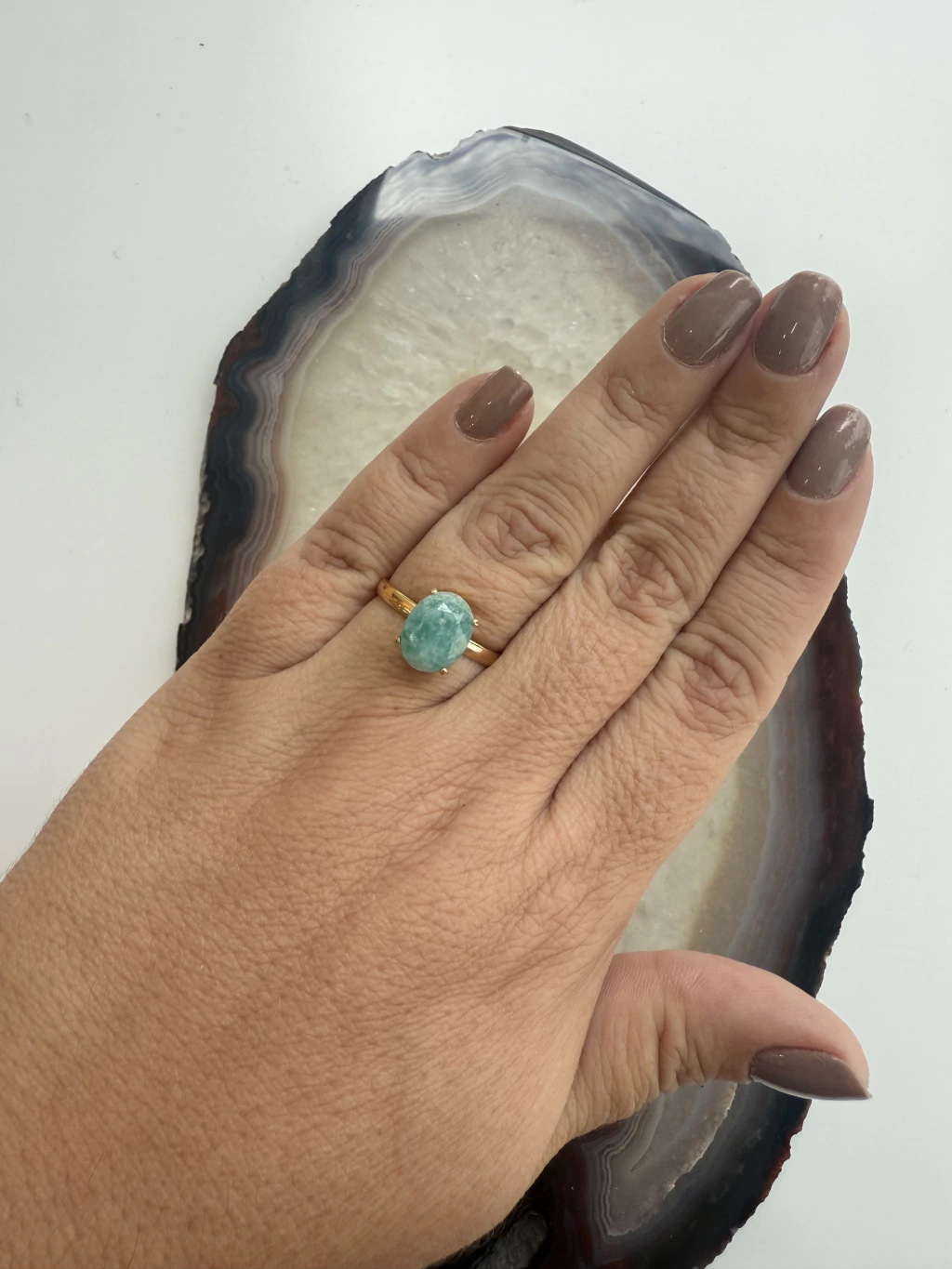 Anel Amazonita Regulável Banho em Ouro - atrair boas coisas