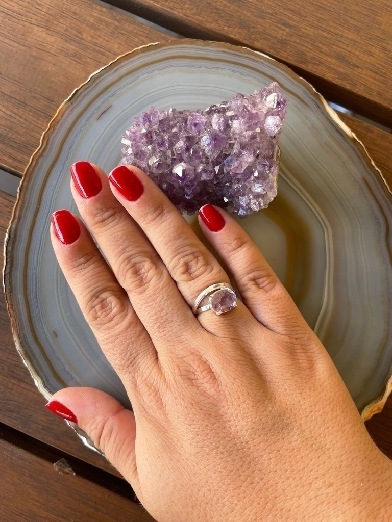 A Ametista é dona de infinita beleza e propriedades transcendentais, pois nos permite atingir os níveis mais profundos de concentração, facilitando a meditação e a tomada de decisões. Na Antiguidade, foi utilizada por magos e sacerdotes como elemento de proteção do espírito. A Ametista também é muito conhecida pelo seu poder de transmutar energias negativas em positivas, transformando as vibrações densas de pessoas e ambientes em energias sutis e harmoniosas. Por sua cor, ela canaliza as energias de cor violeta, que promovem a purificação do corpo físico, ajudando na eliminação de qualquer tipo de malefício presente.