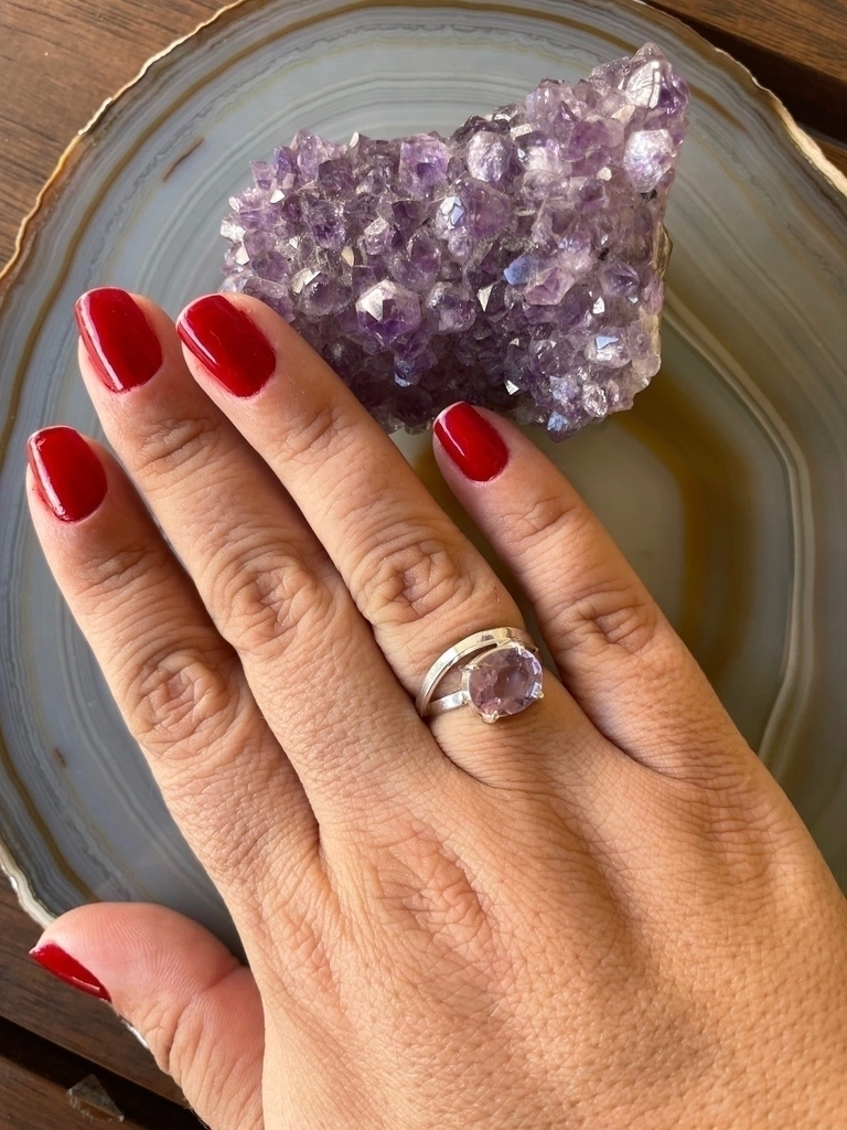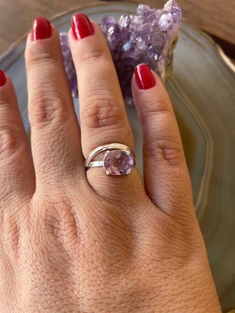 Anel Ametista no cabochão na qualidade extra em Prata 925. Tamanho 15 - Transmutação