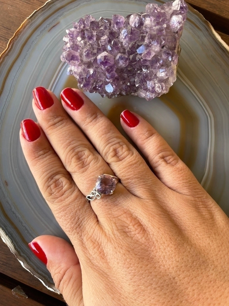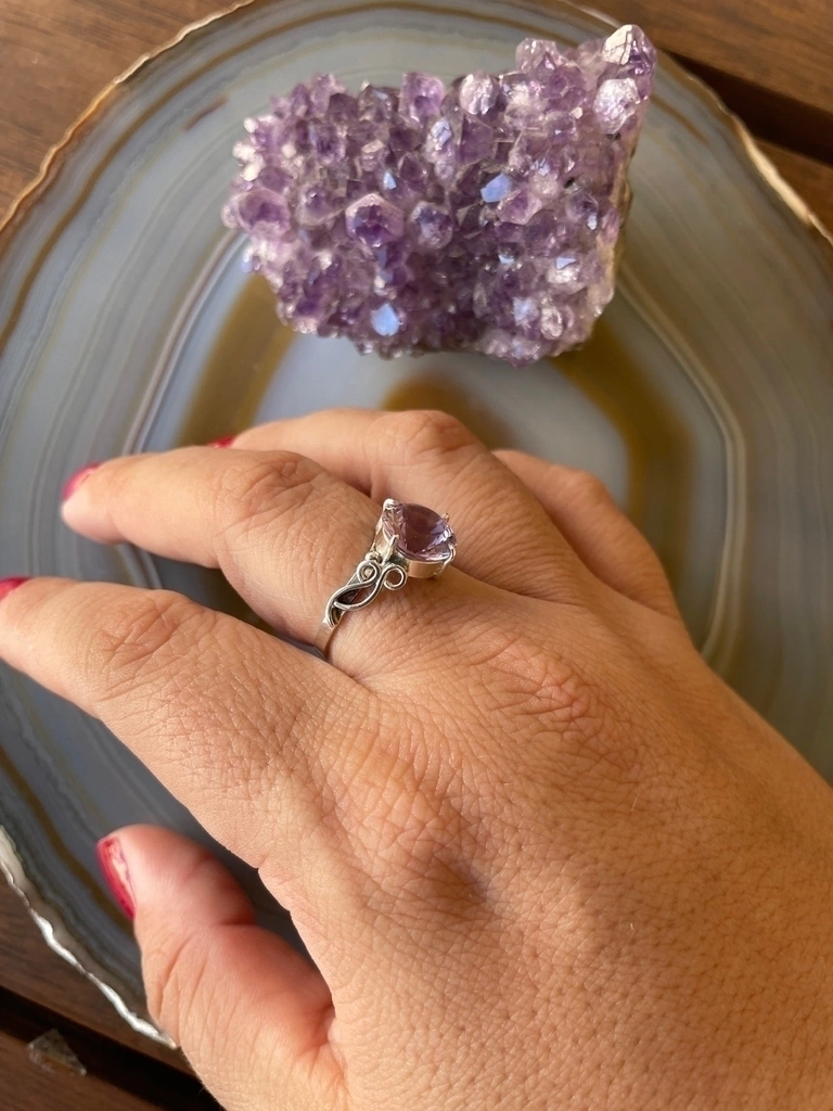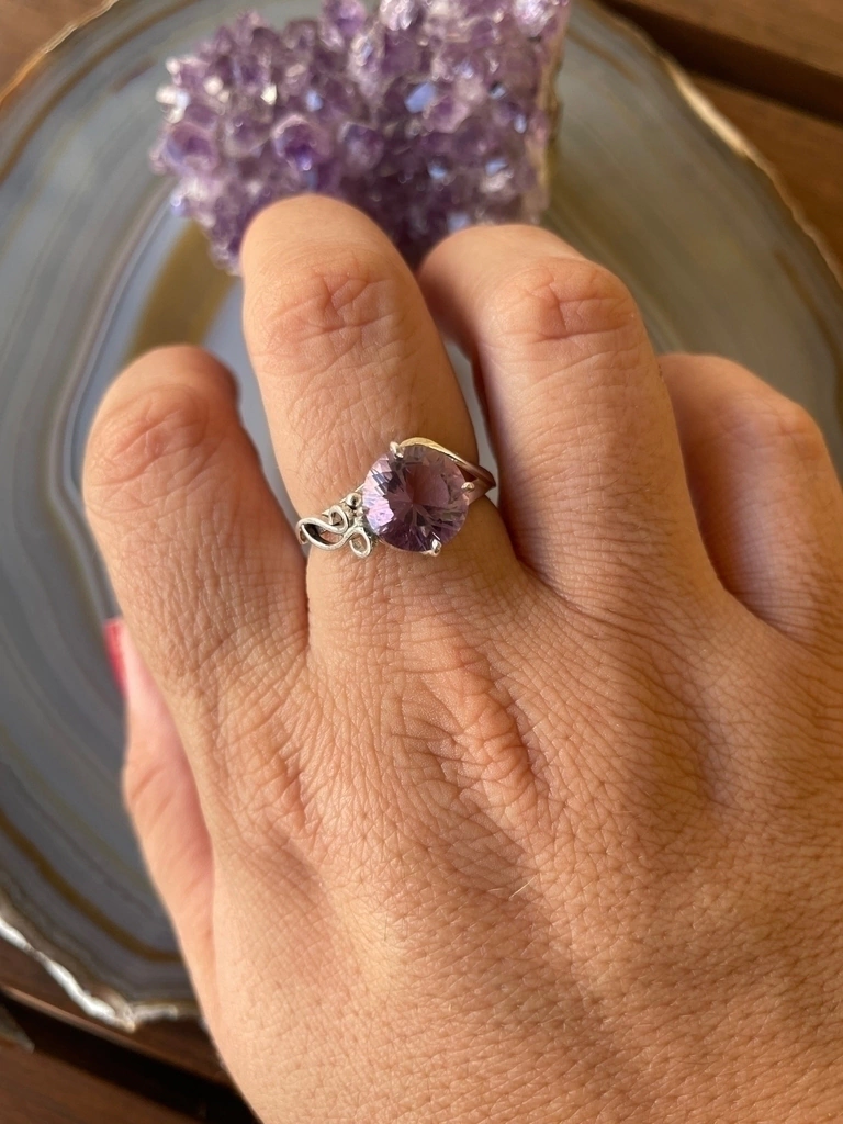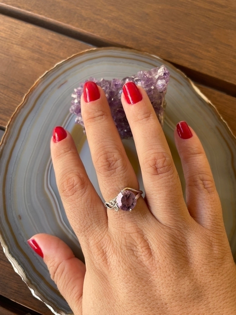 Anel Ametista no cabochão com qualidade extra em Prata 925. Tamanho 18 - Transmutação