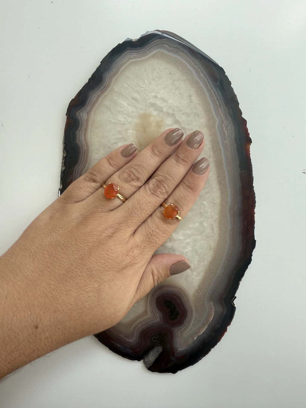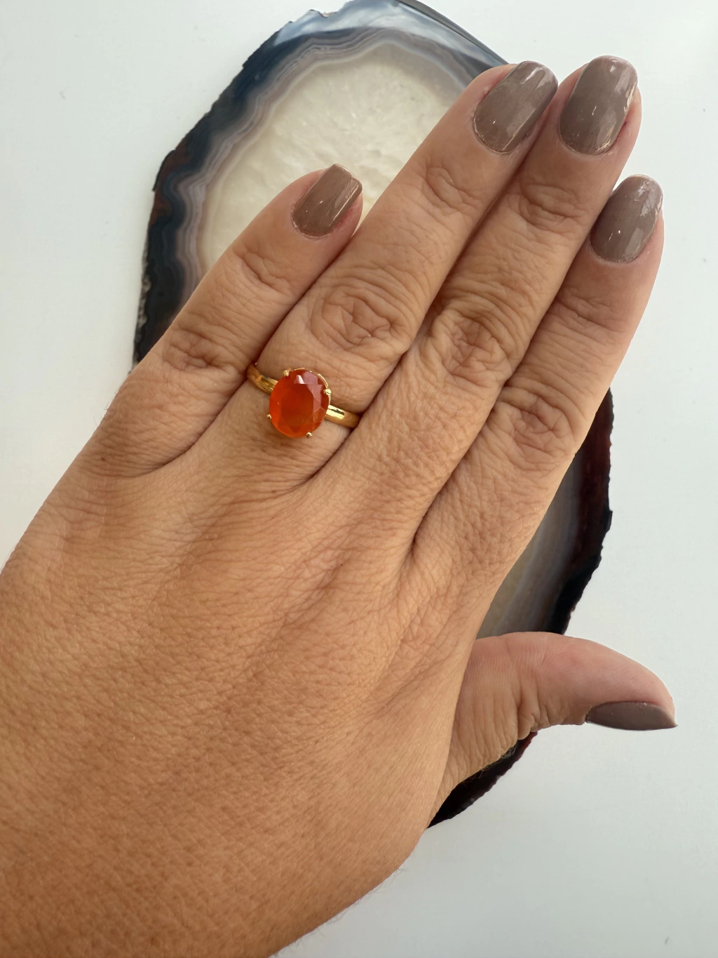 Anel Cornalina Regulável em Banho Ouro - Vitalidade e Coragem
