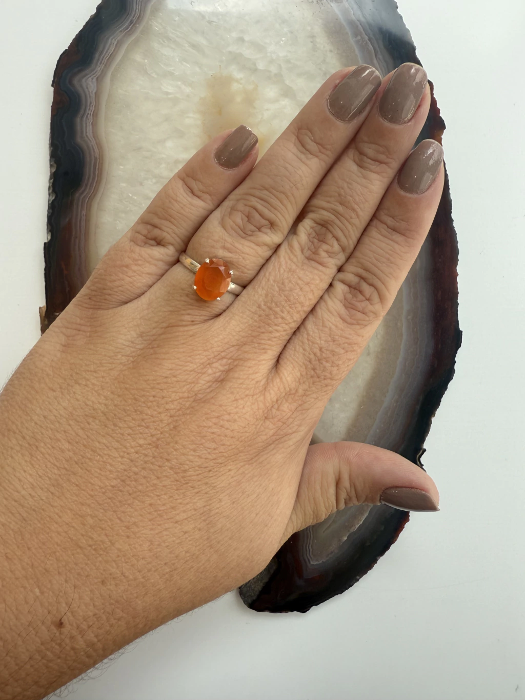 Anel Cornalina Regulável em Banho Prata - Vitalidade e Coragem