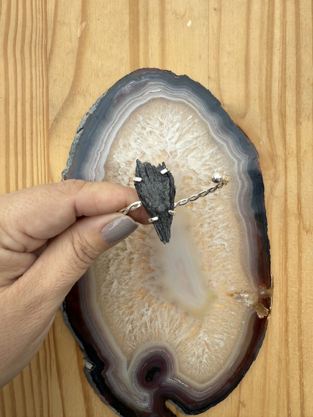 Bracelete Cianita Preta ou Vassourinha de Bruxa em Banho Prata - Proteção e Limpeza