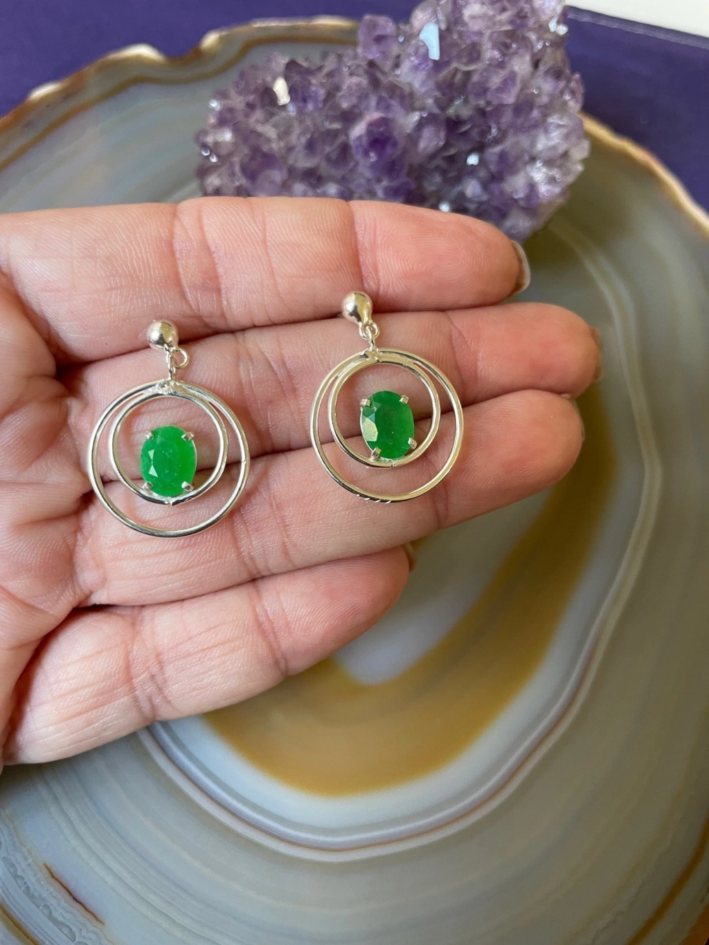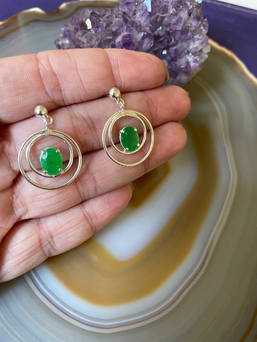 Brinco Círculo Jade em Prata 925 - Cristal das Virtudes
