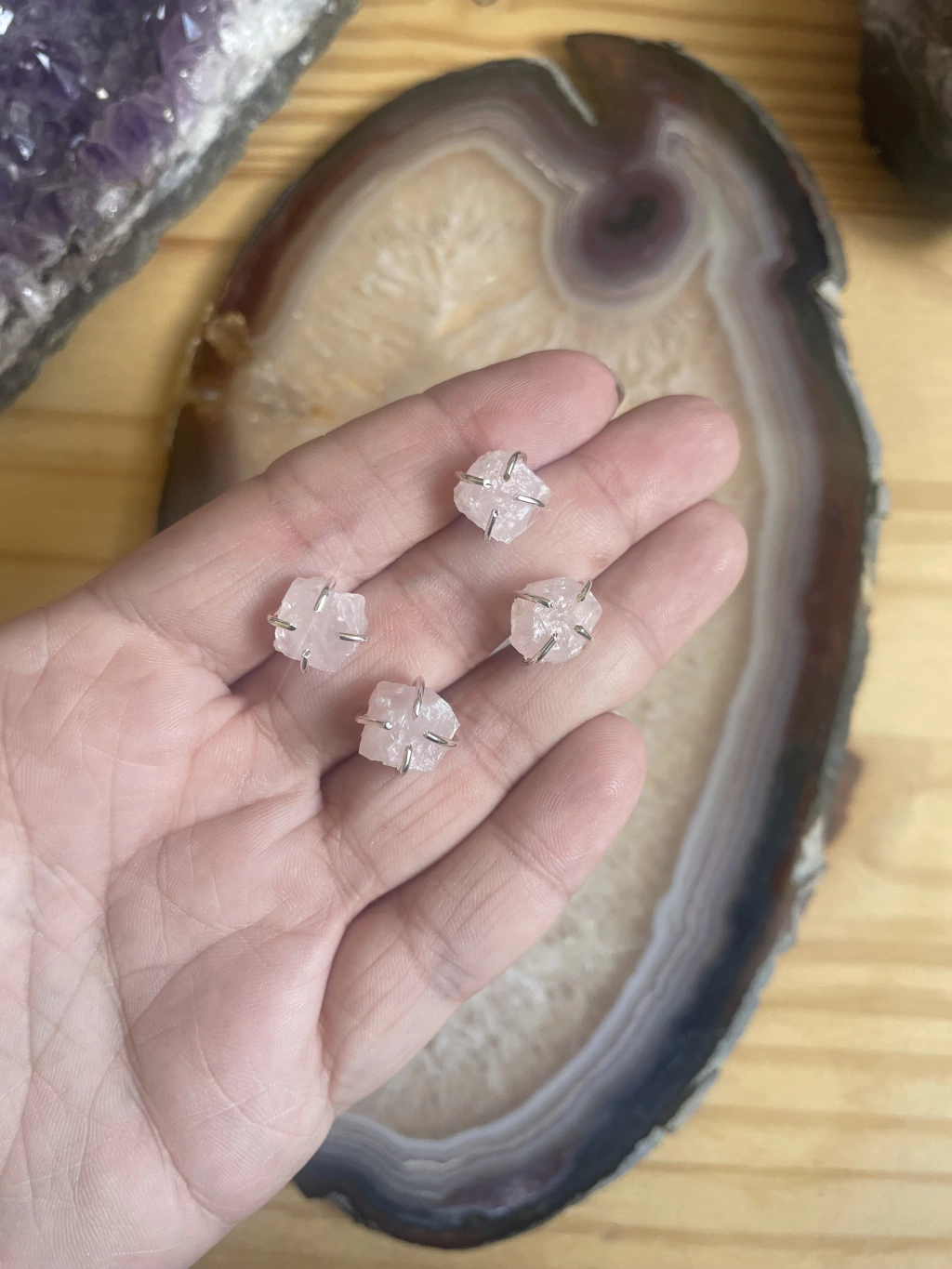Brinco Quartzo Rosa Bruto no Banho Flash em Prata - Amor