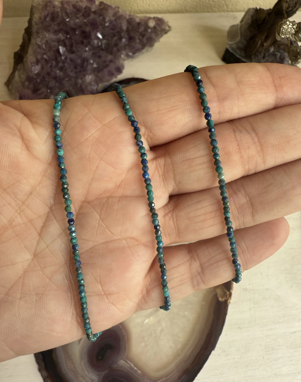 Colar Azurita 2mm Multifacetado - Limpeza de crença limitante e Iluminação
