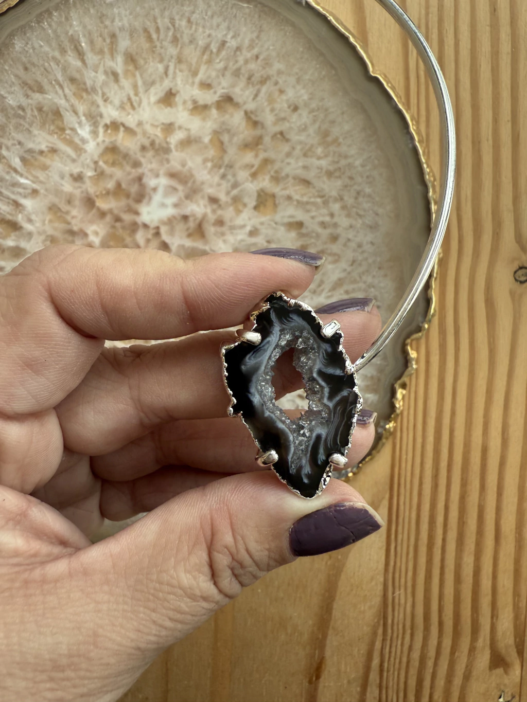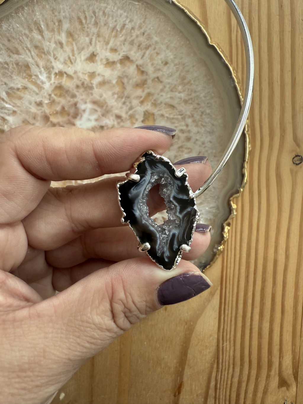 Colar Choker Geodo de Ágata com Drusa no Banho em Prata - Equilíbrio e Coragem