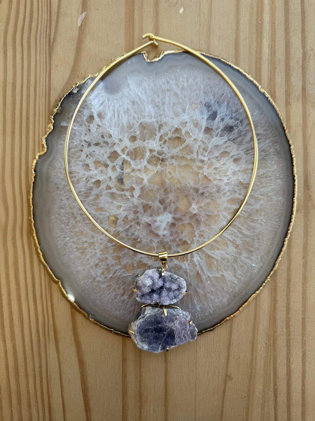 Colar Gargantilha Drusa de Ametista e Lepidolita - Conexão Espiritual