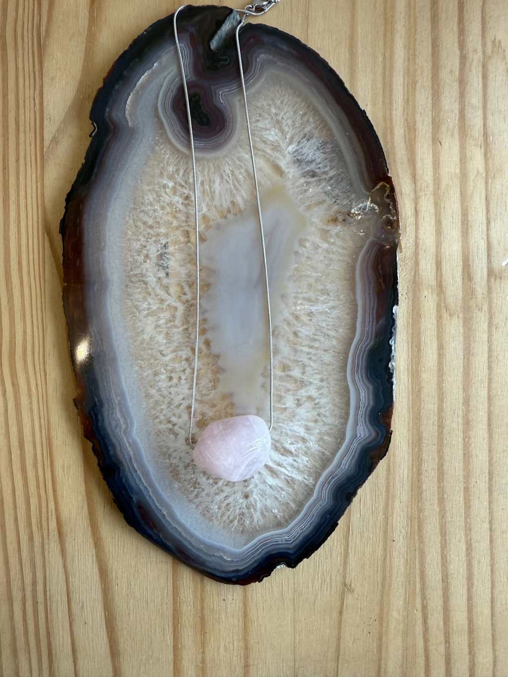 Colar Passante Quartzo Rosa em aço inoxidável - Amor e Harmonia