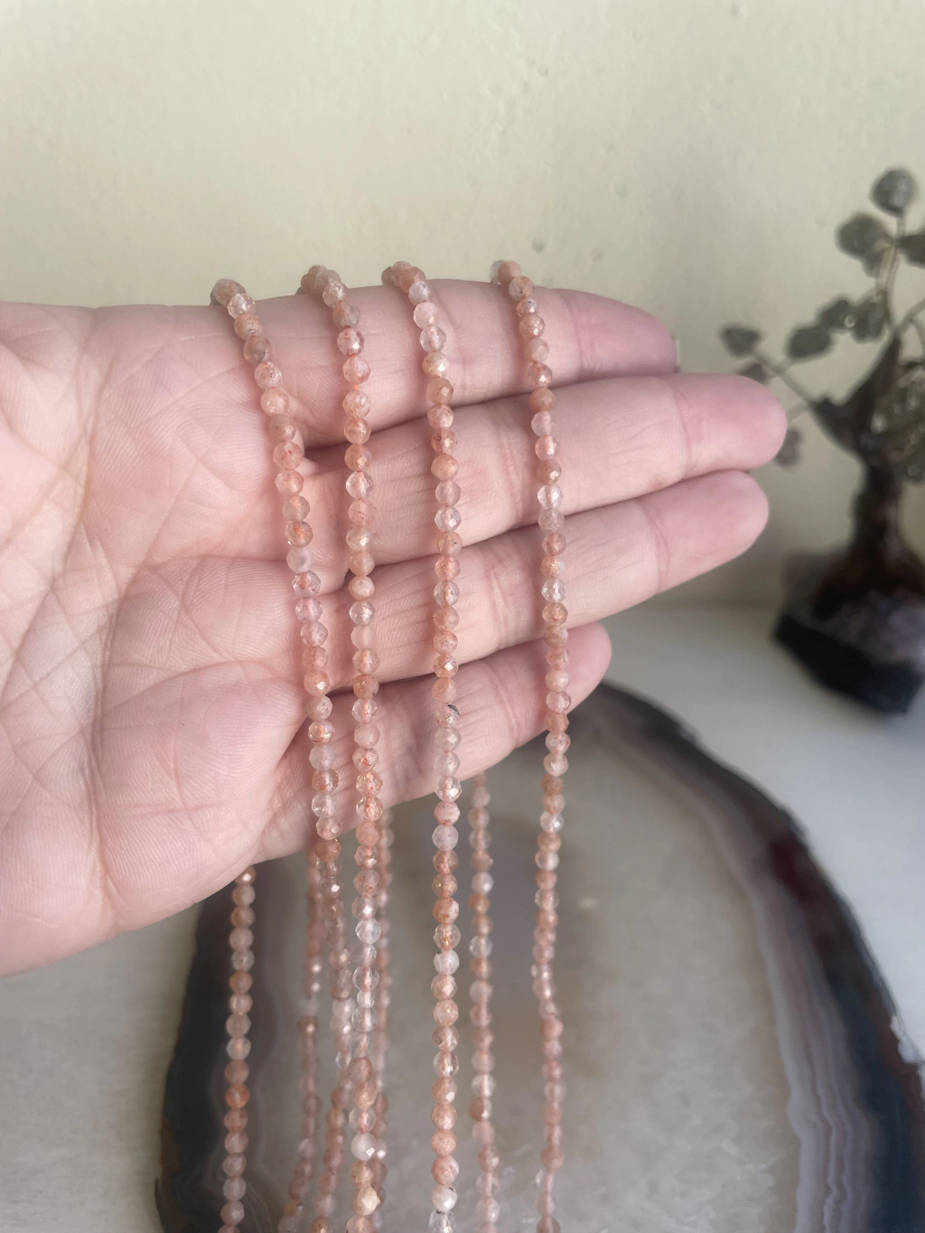 A Pedra do Sol é um membro da família das pedras de Feldspato e é assim chamada por seus tons quentes de dourado, laranja, vermelhos e marrons que brilham como o sol. Inclusões de goethita ou hematita refratam a luz entre as diferentes camadas do cristal e produzem um efeito iridescente quando a pedra é vista de vários ângulos. Com o brilho do sol e o fogo do raio solar, a Pedra do Sol carrega a energia de Ra, o deus do sol, cuja energia traz toda a vida potencial de dentro da Terra. É a Pedra da liderança e do poder pessoal, liberdade e consciência expandida. Refletindo verdadeiramente as qualidades da Luz, ele traz abertura, benevolência e calor, força, clareza mental e a disposição e capacidade de conceder bênçãos aos outros.