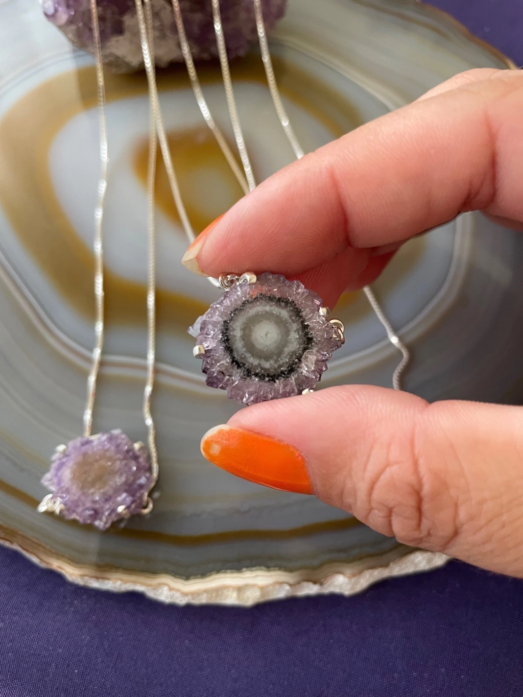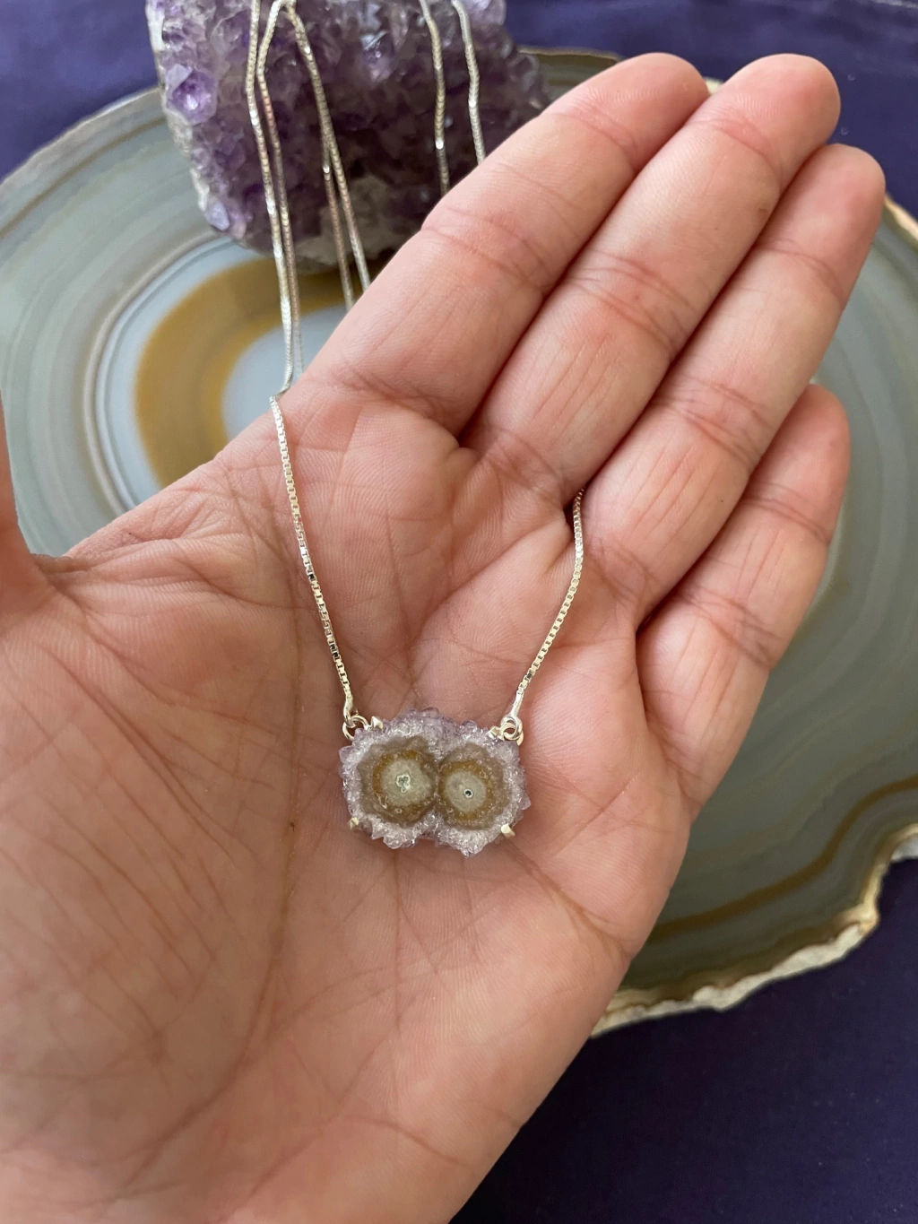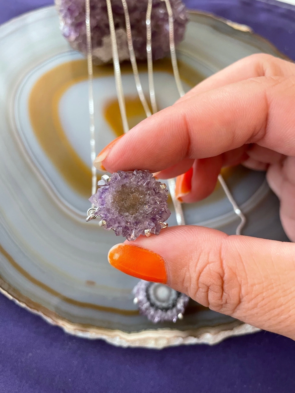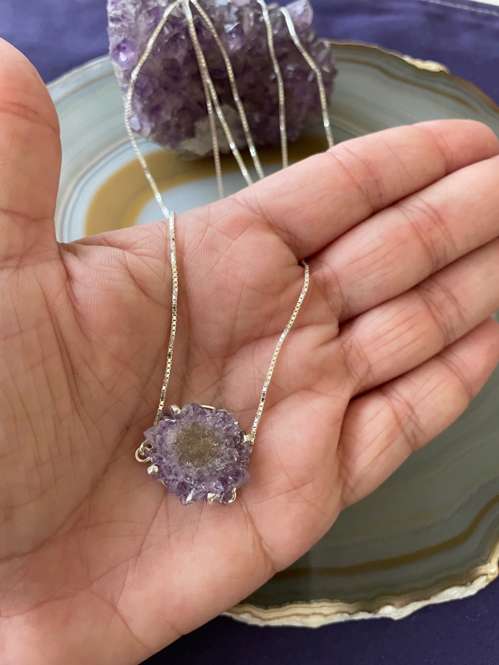 Cordão 60cm com Estalactite ou Flor de Ametista em Prata 925