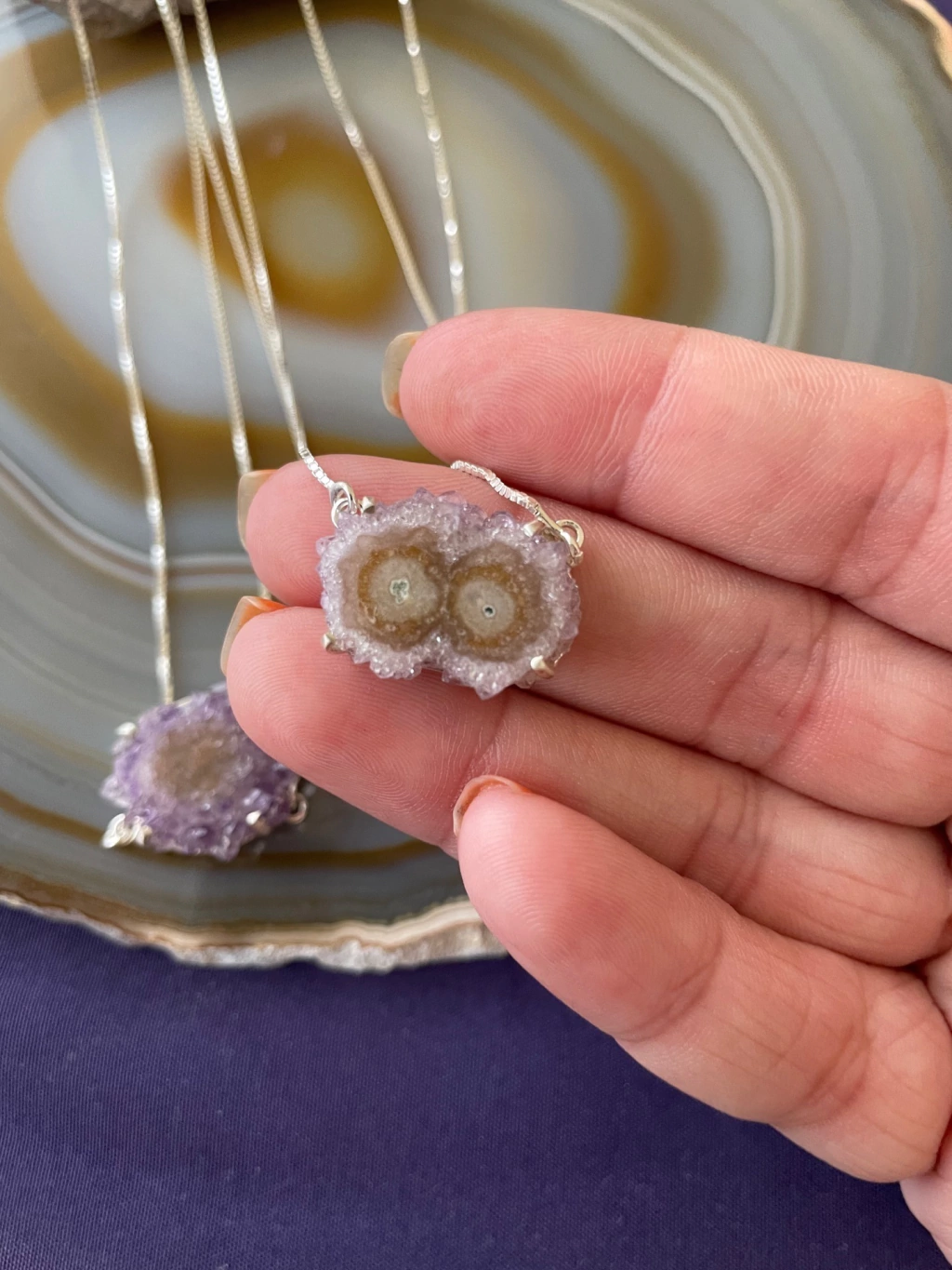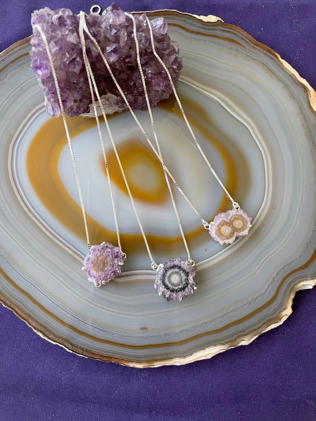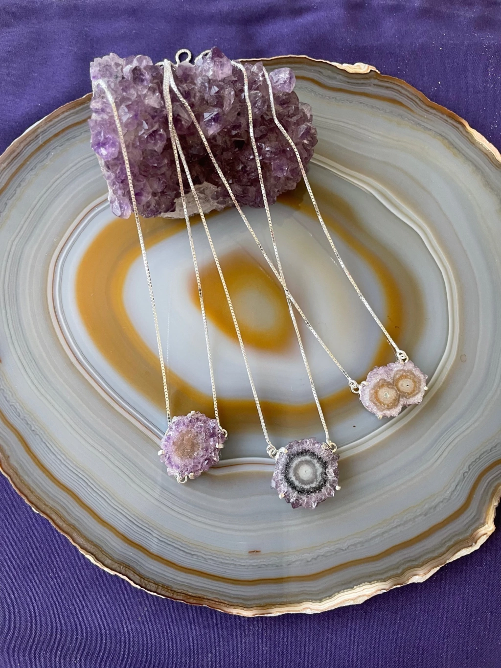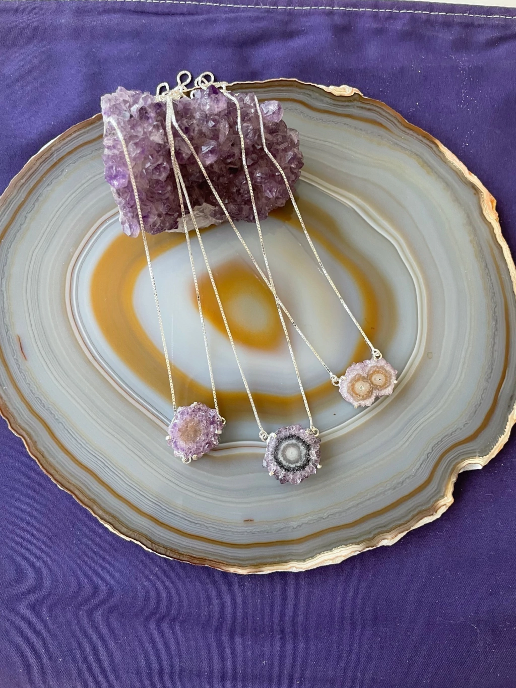 Cordão 60cm com Estalactite ou Flor de Ametista em Prata 925