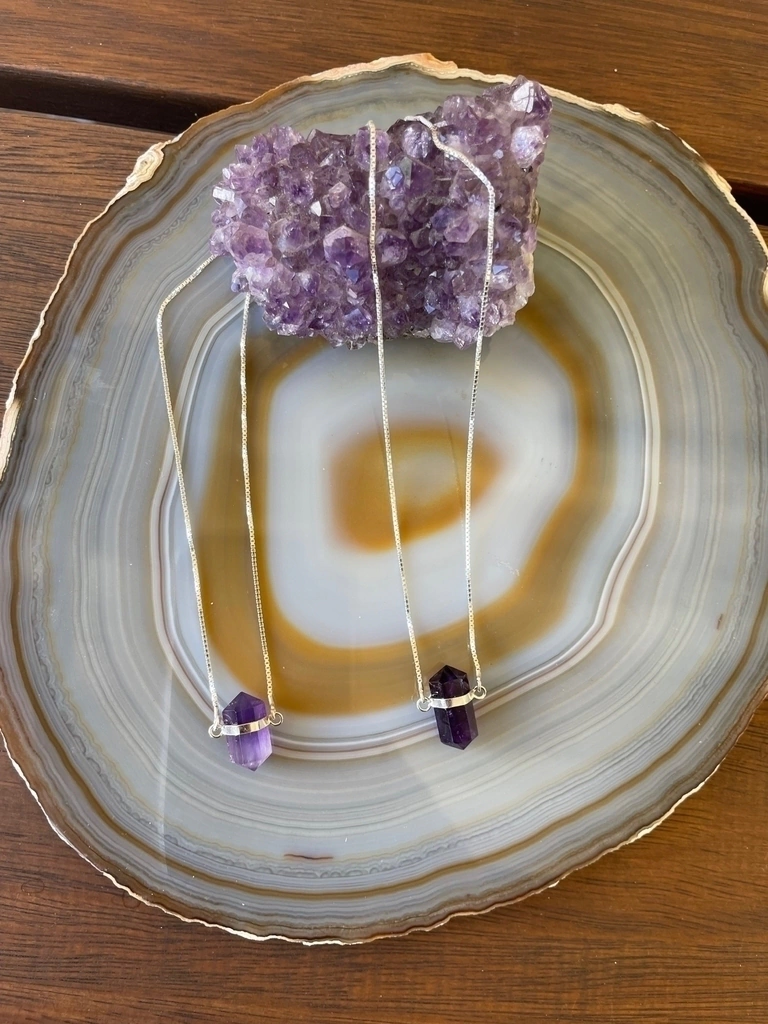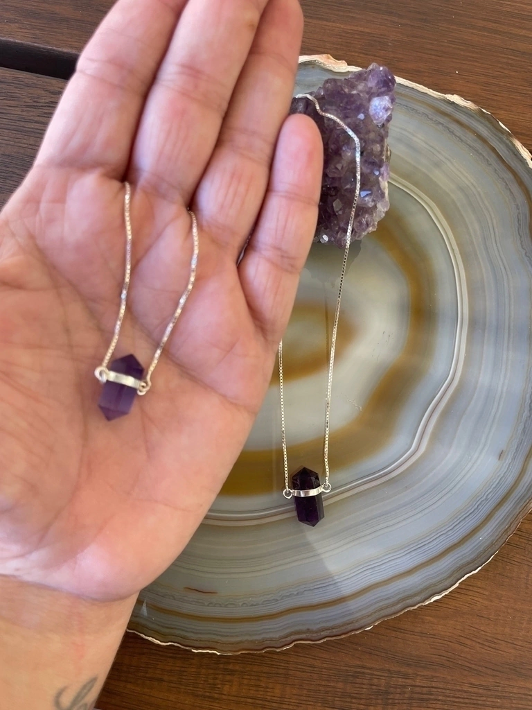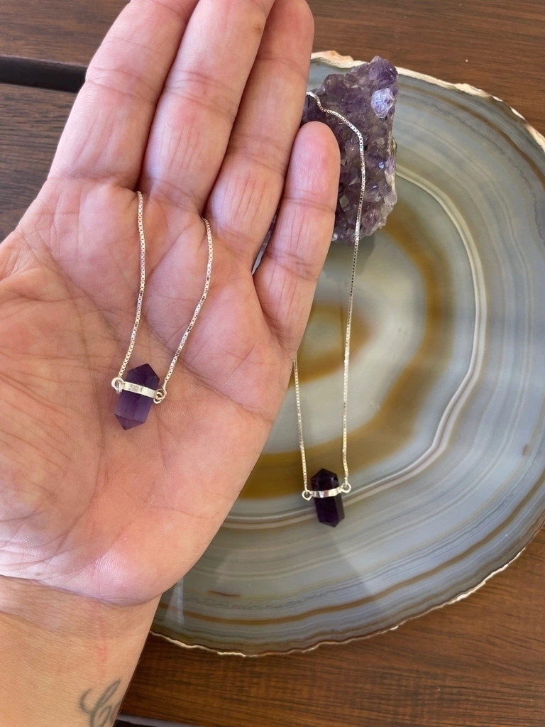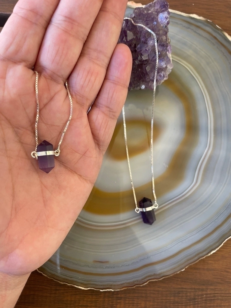 Cordão 45 cm Biponta Ametista na qualidade extra em Prata 925 - Transmutação