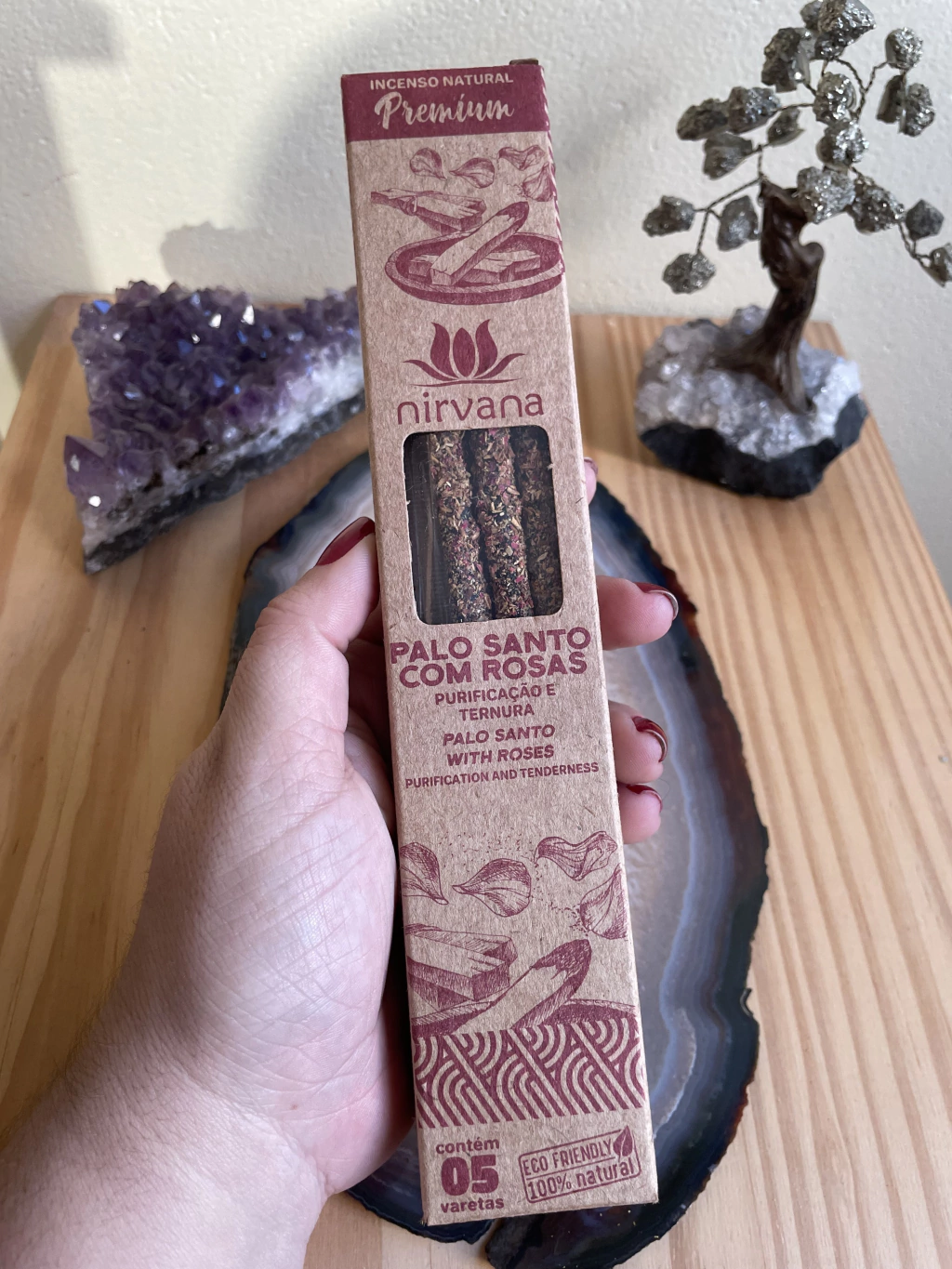 Incenso Nirvana Premium - Palo Santo com Rosas- Purificação e Ternura