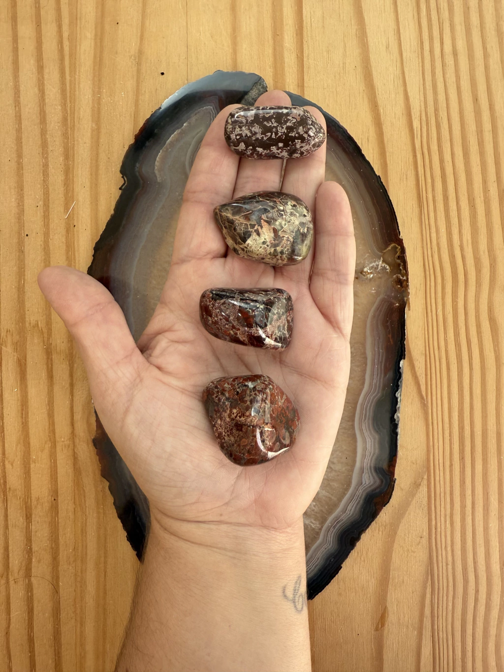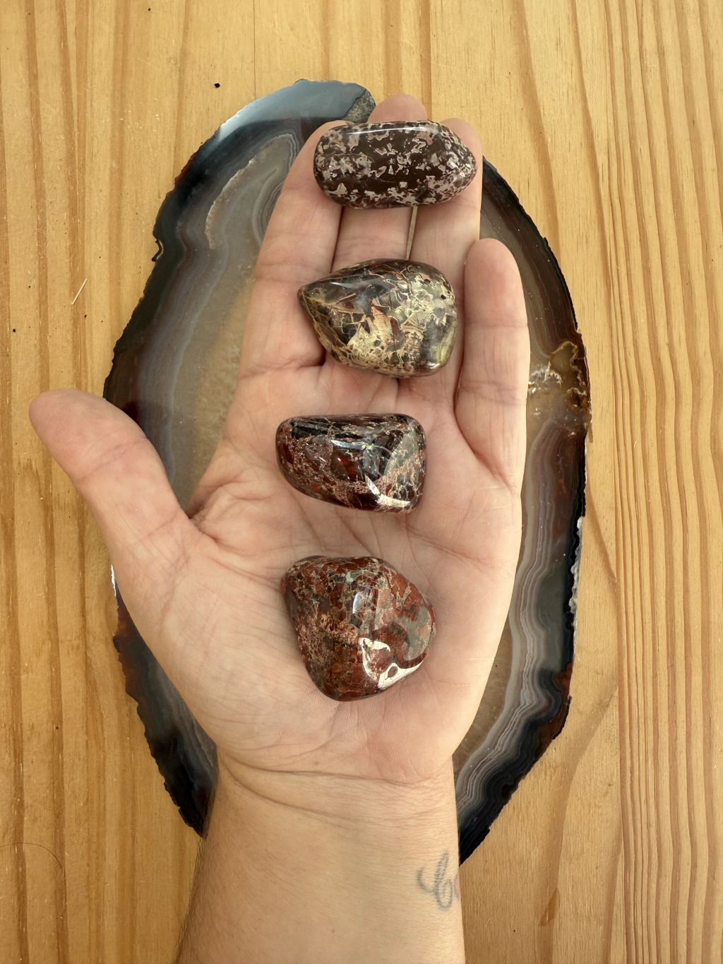 O Jaspe Brechado é conhecido como a pedra de fertilidade, de prazer sexual, que ajudava seu usuário a encontrar o verdadeiro amor e fidelidade eterna. É uma pedra que protege a família de maus espíritos, preservando-a de catástrofes. É considerada uma pedra protetora contra vibrações negativas.