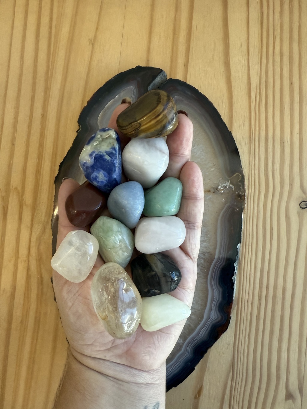 Kit com 12 cristais rolados, contendo 1 cristal de cada um dos descriminados abaixo, com tamanho até 2cm e todos selecionados especialmente para você.