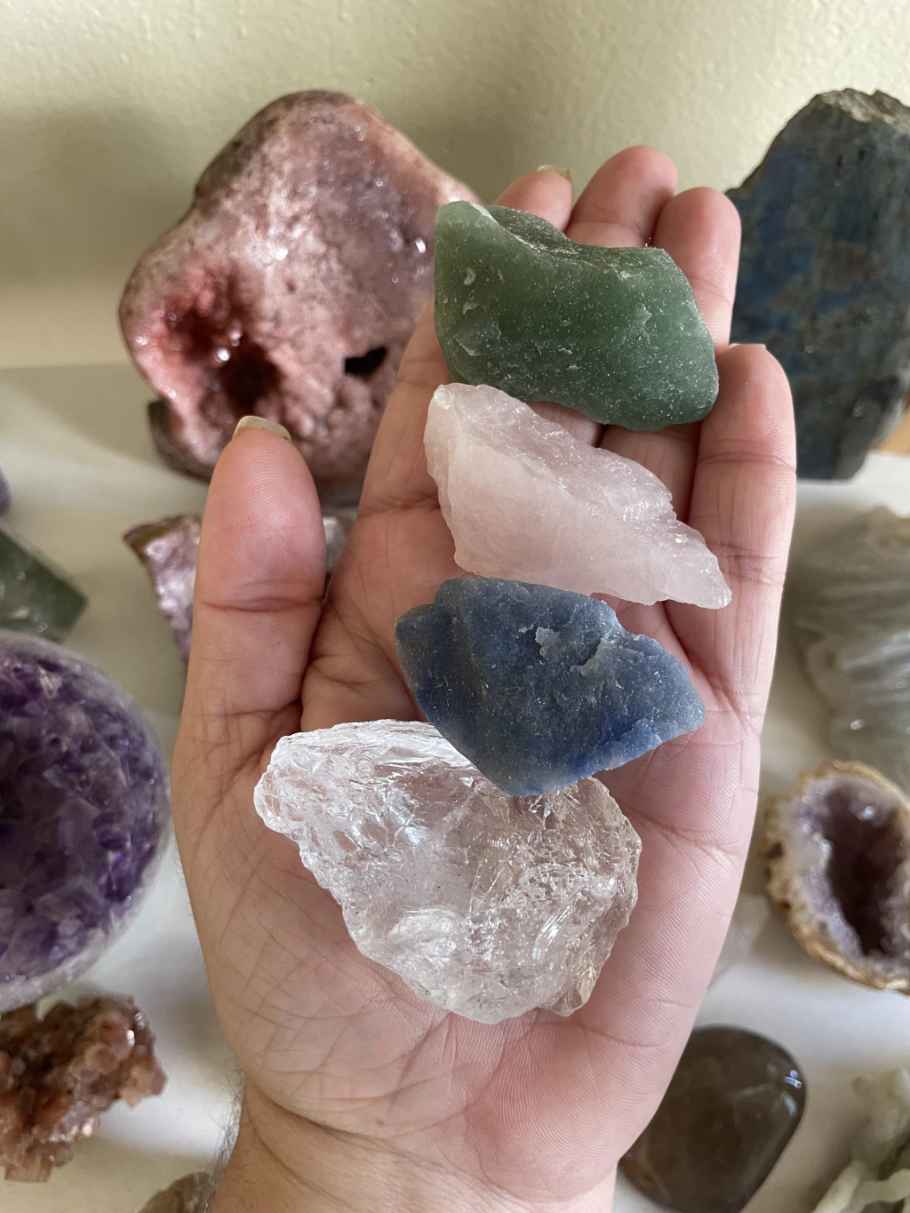 Quartzo Rosa: Aflora os sentimentos, traz para o consciente processos emocionais inacabados ou situações mal resolvidas, abre seu coração para que essas questões possam ser trabalhadas e solucionadas, eliminando mágoas e auxiliando no perdão.