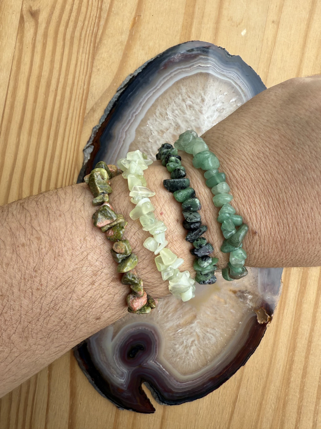 A Unakita é uma pedra de visão que equilibra as emoções com a espiritualidade. Colocado sobre o Chakra Frontal ela o abre e promove a visualização.