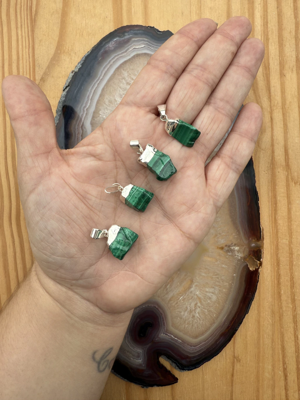 Pingente Malaquita no Banho Prata - Poder Pessoal