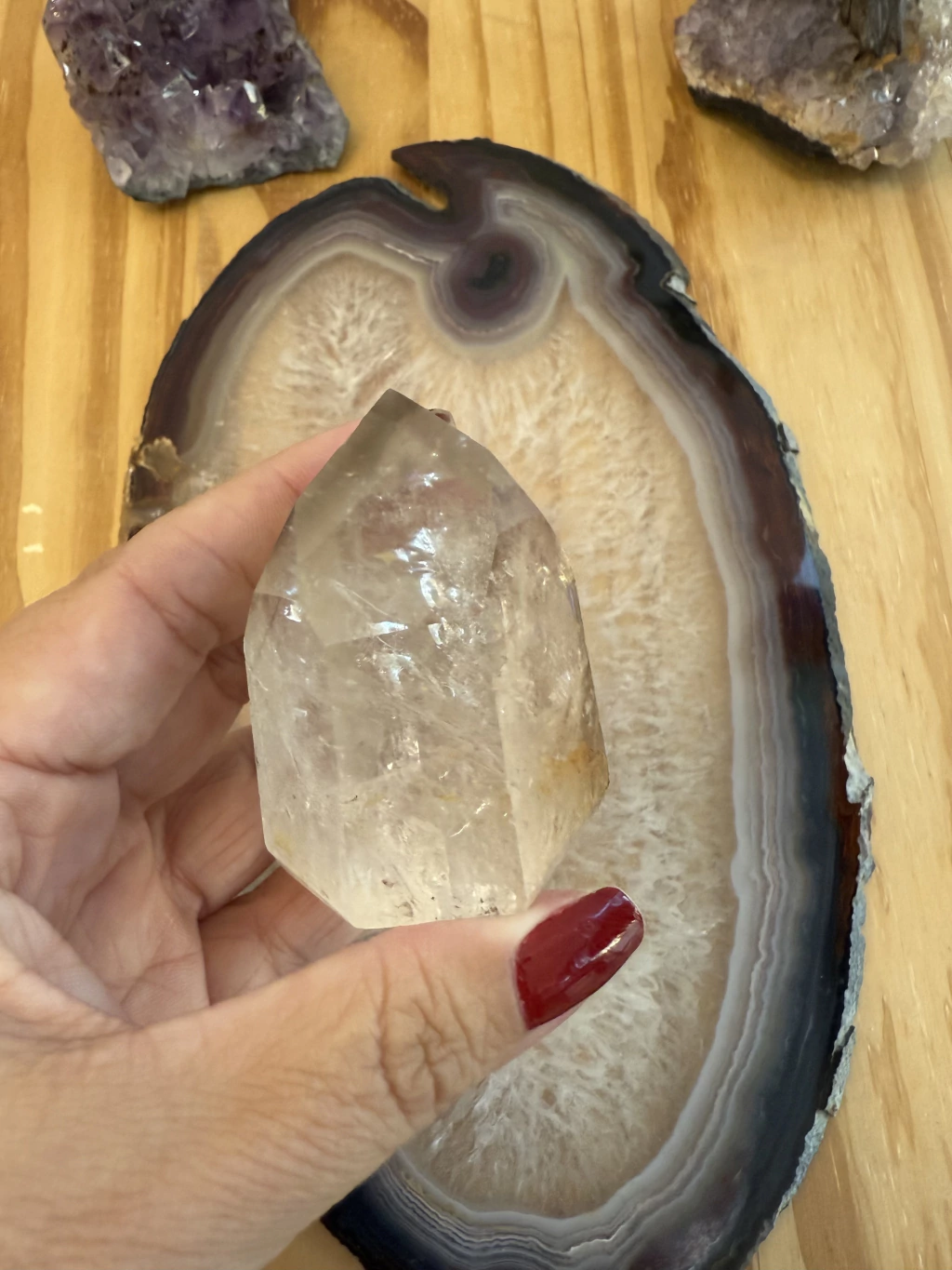 Ponta Cristal Mestre com Arco-íris e inclusões - Felicidade
