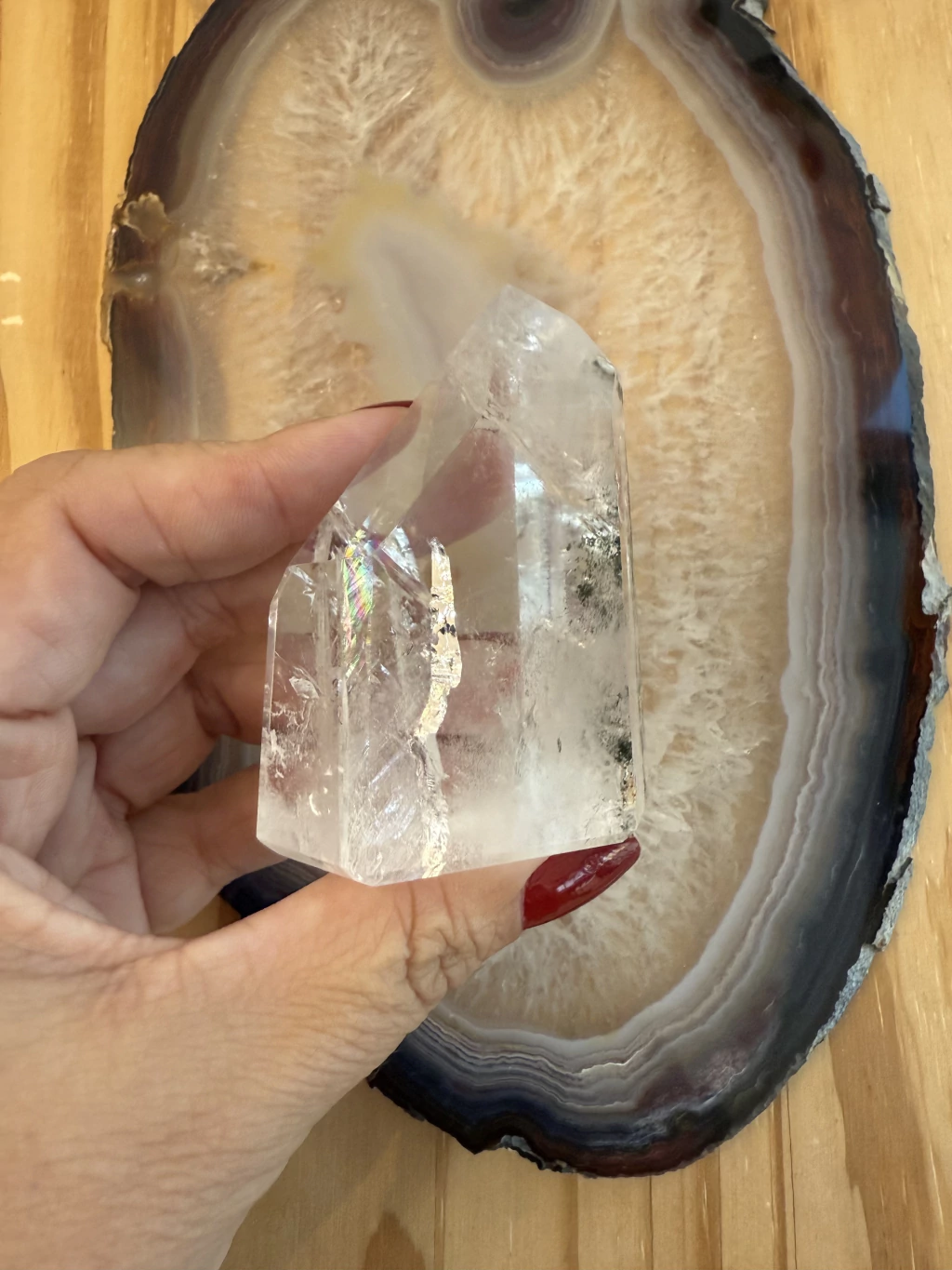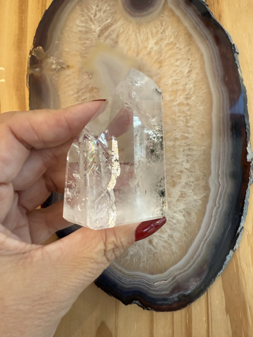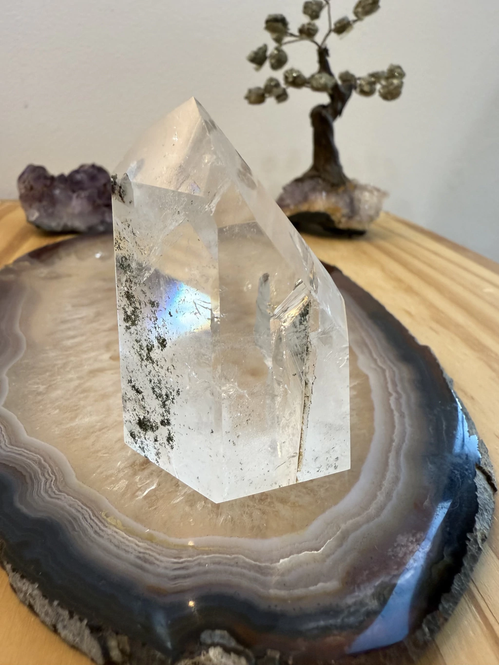 Ponta Cristal Mestre com Arco-íris e inclusões - Felicidade