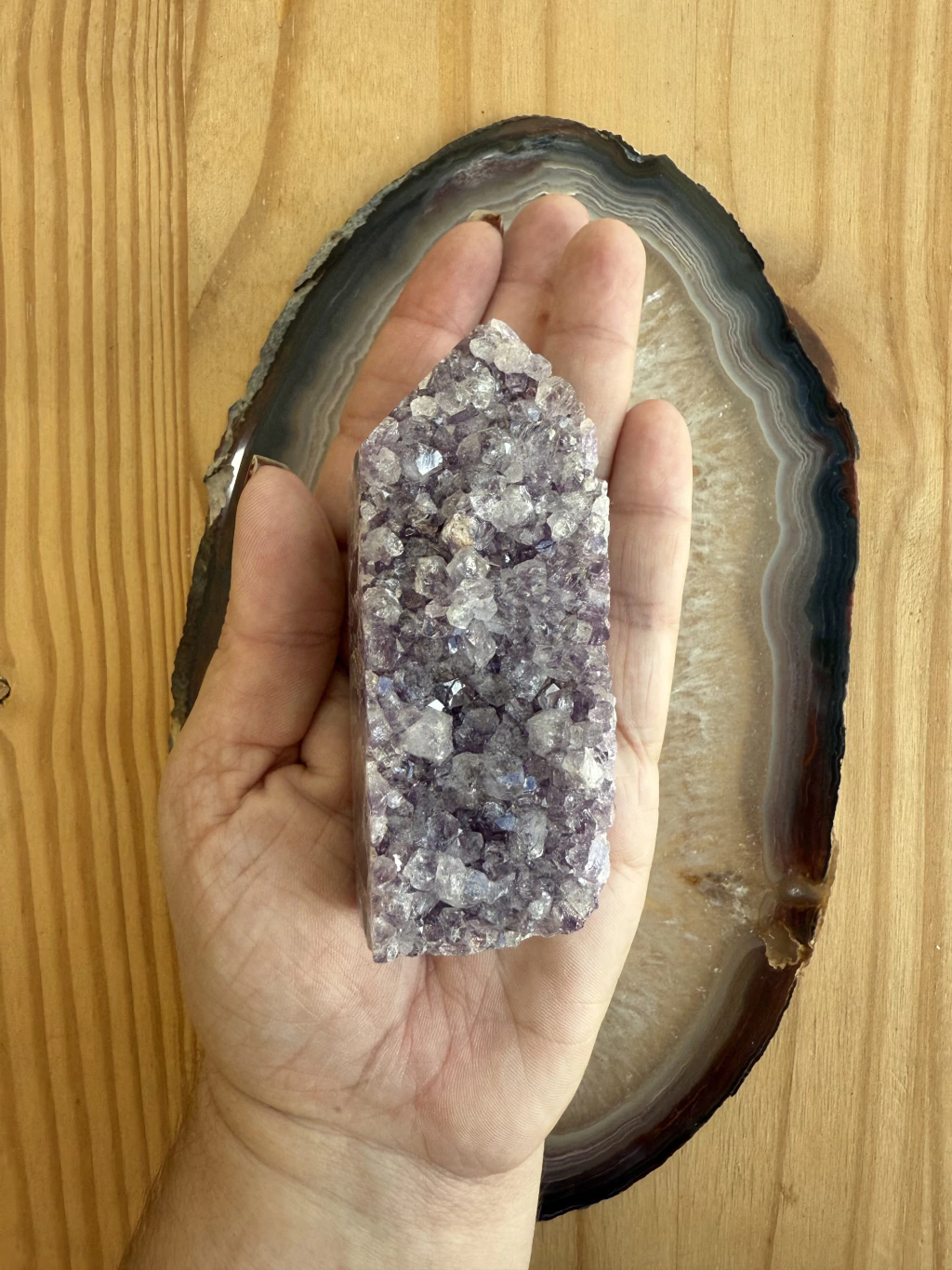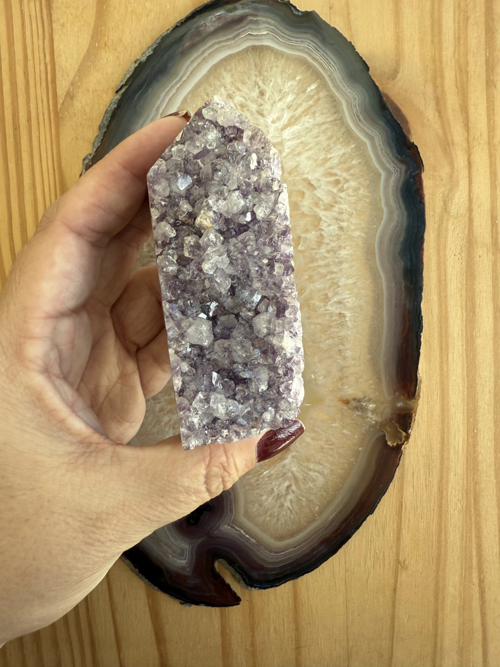 A Ametista é dona de infinita beleza e propriedades transcendentais, pois nos permite atingir os níveis mais profundos de concentração, facilitando a meditação e a tomada de decisões. Na Antiguidade, foi utilizada por magos e sacerdotes como elemento de proteção do espírito. A Ametista também é muito conhecida pelo seu poder de transmutar energias negativas em positivas, transformando as vibrações densas de pessoas e ambientes em energias sutis e harmoniosas. Por sua cor, ela canaliza as energias de cor violeta, que promovem a purificação do corpo físico, ajudando na eliminação de qualquer tipo de malefício presente.