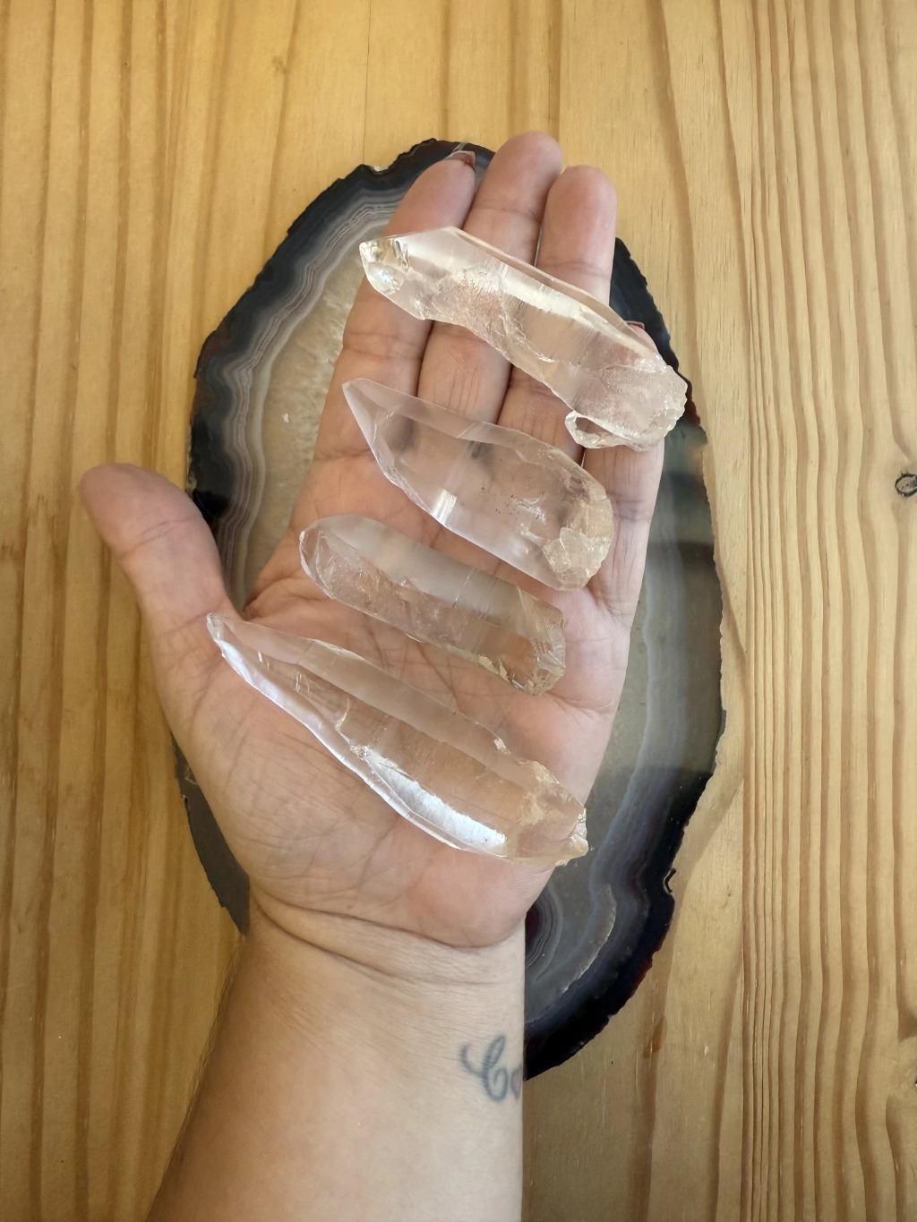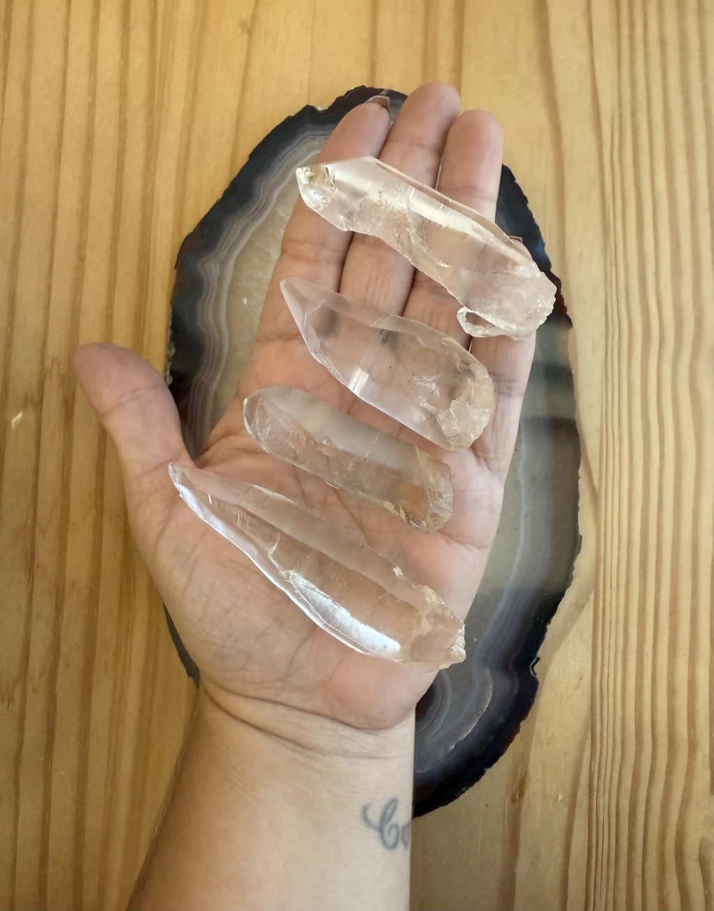 - Com as mãos: você mesmo pode energizar o seu cristal: coloque-os entre as mãos e vá girando até que ele aqueça. Em seguida, inspire profundamente imaginando uma luz branca entrando por suas narinas até o seu pulmão e expire essa energia em cima do seu cristal.