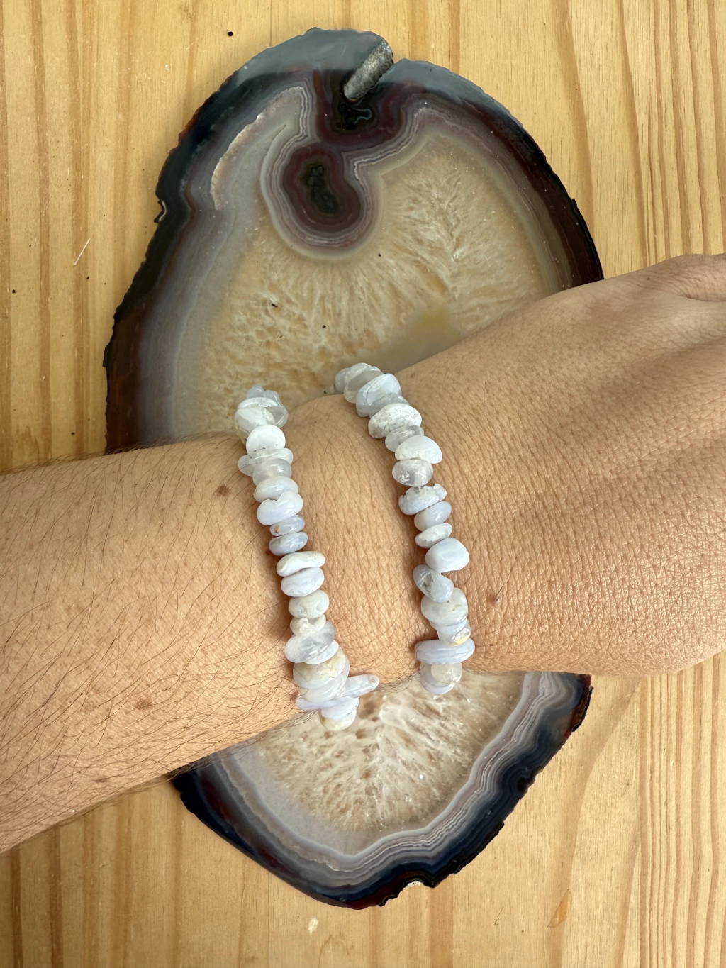 Na terapia com cristais, a calcedônia é usada para limpar, considerando-se que é eficaz mesmo em feridas abertas. Ela estimula a lactação nas mulheres a amamentar e incentiva o instinto maternal. Aumenta a força física, sendo usada por alguns terapeutas para reduzir os efeitos da senilidade e da demência. Também é usada para curar problemas nos olhos, na vesícula biliar,nos ossos, baço, sistema circulatório e no sangue. Promove a fraternidade, a boa vontade, traz harmonia à mente e ao corpo, às emoções e ao espírito. Tem a capacidade de absorver e dissipar a energia negativa, evitando transmissões futuras. É uma pedra de limpeza, especialmente de feridas. Estimula o leite materno, o sono tranquilo, a autoconfiança e a capacidade de se impor.