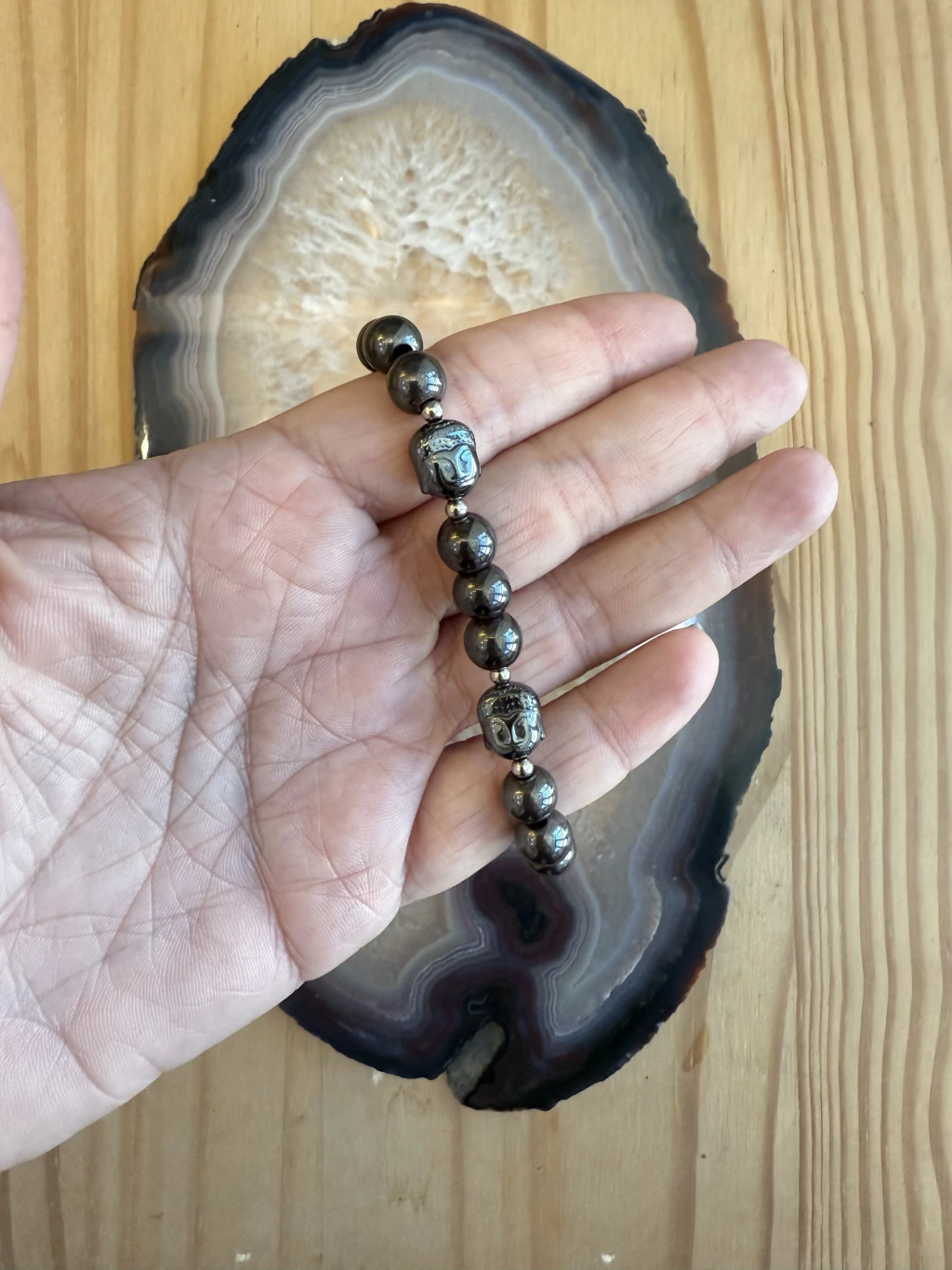 Pulseira Hematita 5 Budas Força Interior 8mm Masculina - Proteção e Aterramento