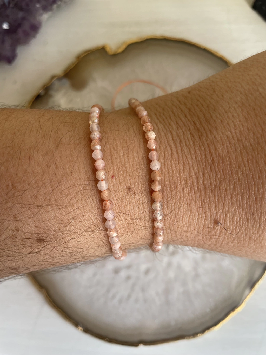Pulseira Pedra do Sol Natural 2mm Multifacetada- Fortalecimento Pessoal e Sucesso