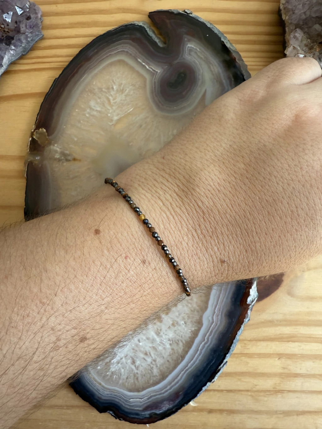 Pulseira Tripla Proteção Multifacetada 2mm - Olho de Tigre, Hematita e Ônix