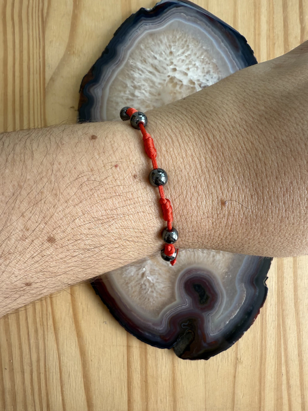 Pulseira Vermelha de 7 nós com Hematita - Proteção e Força