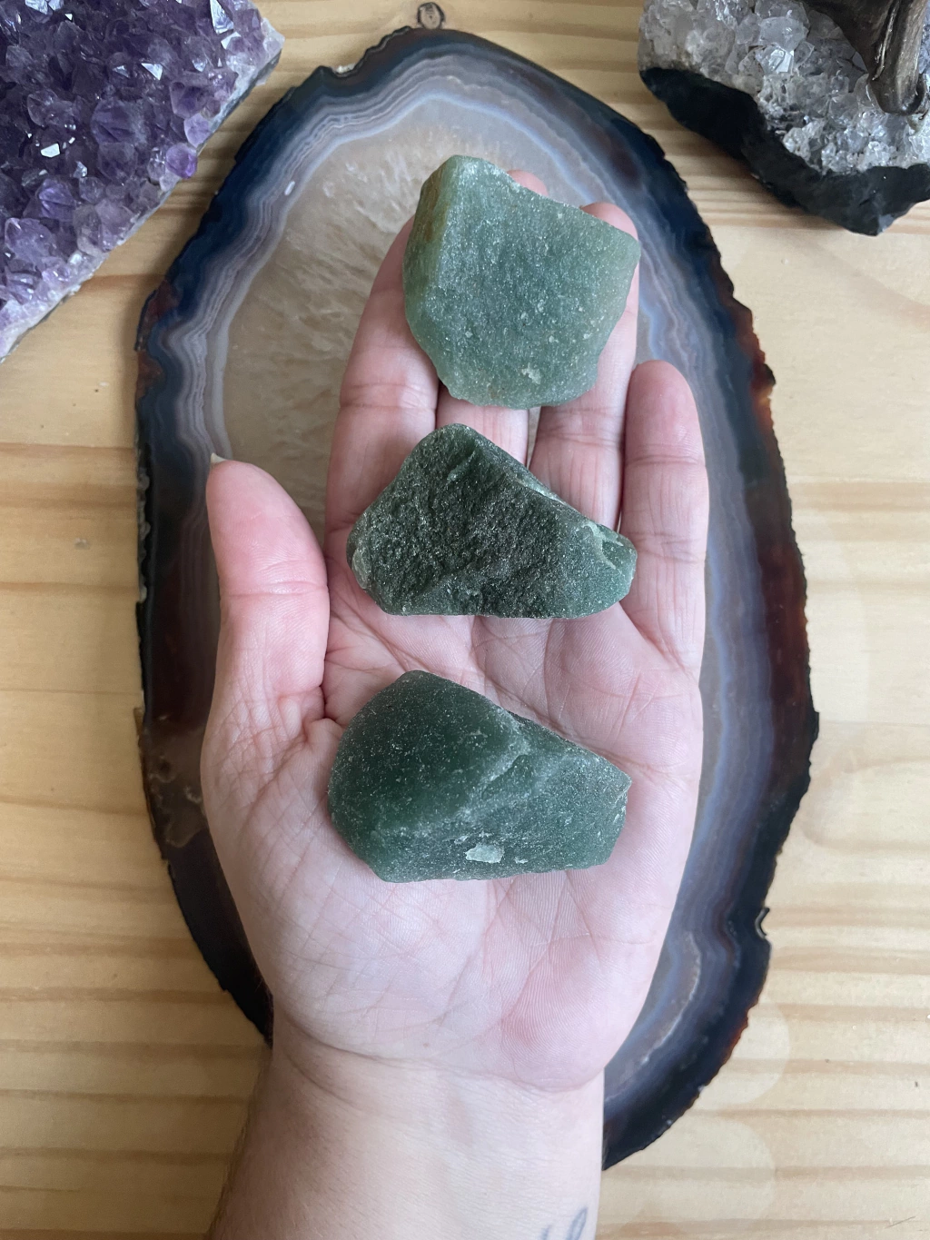 - Com as mãos: você mesmo pode energizar o seu cristal: coloque-os entre as mãos e vá girando até que ele aqueça. Em seguida, inspire profundamente imaginando uma luz branca entrando por suas narinas até o seu pulmão e expire essa energia em cima do seu cristal.