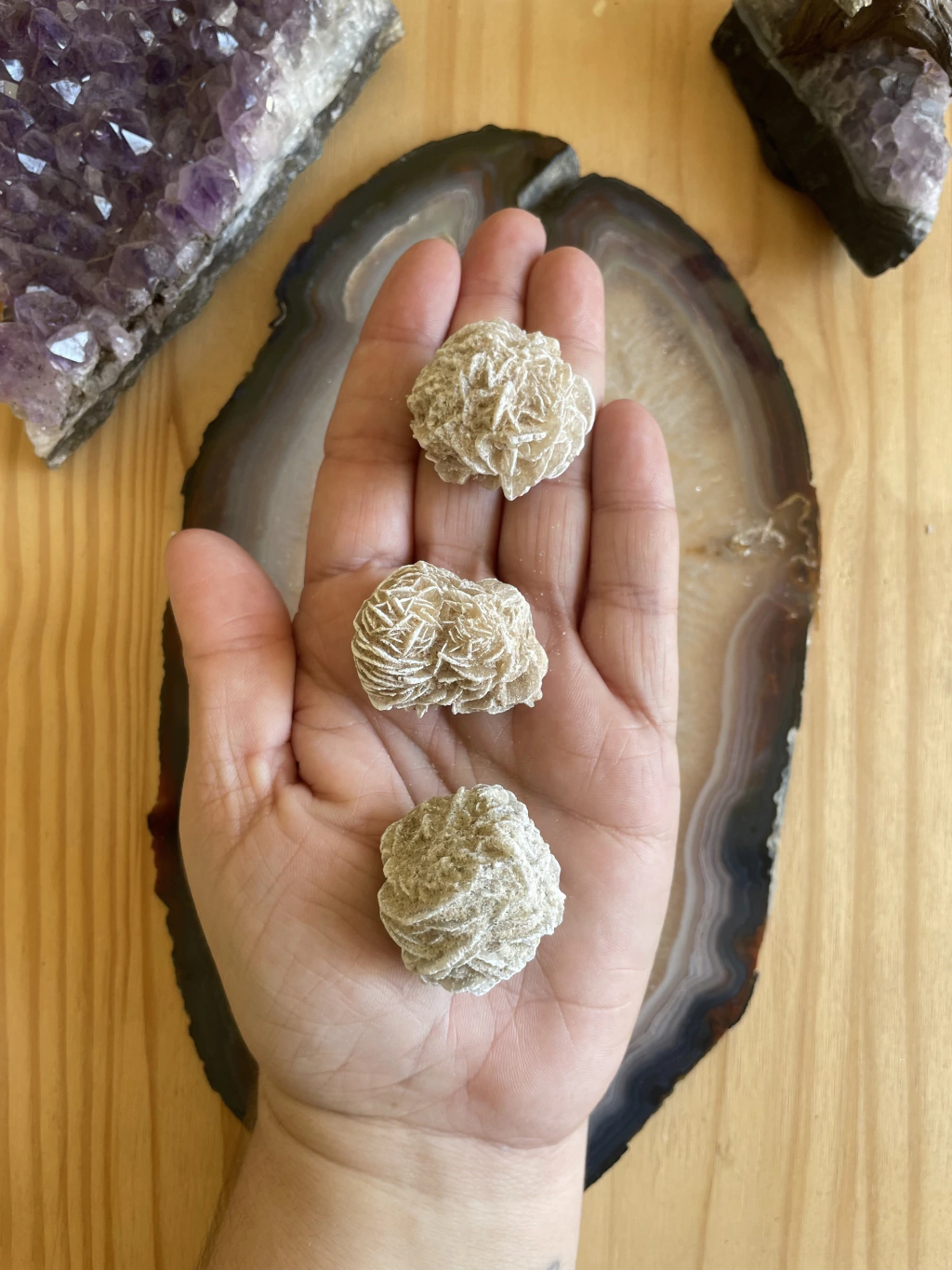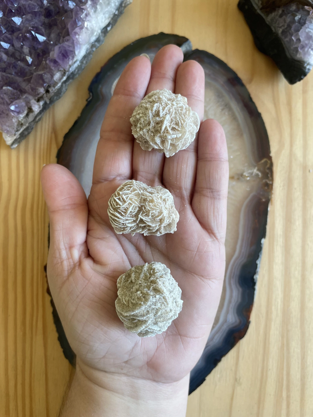Quando usamos este cristal na meditação, ele transmuta conflitos antigos em amor, e nos ensina a arte de dar e receber com amor. Essa pedra controla as nossa explosões emocionais. Por fim, a Rosa-Do-Deserto é um cristal do elemento terra, atua como um agente de cura nos locais que a energia da mãe terra foi pertubada.
