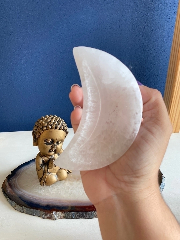 - Luz da lua: a luz da lua também ajuda a energizar. A lua possui uma energia mais feminina, delicada, sensitiva. Portanto, pode deixar o seu cristal tomar um banho de lua pela noite toda, de preferência na lua crescente ou cheia.